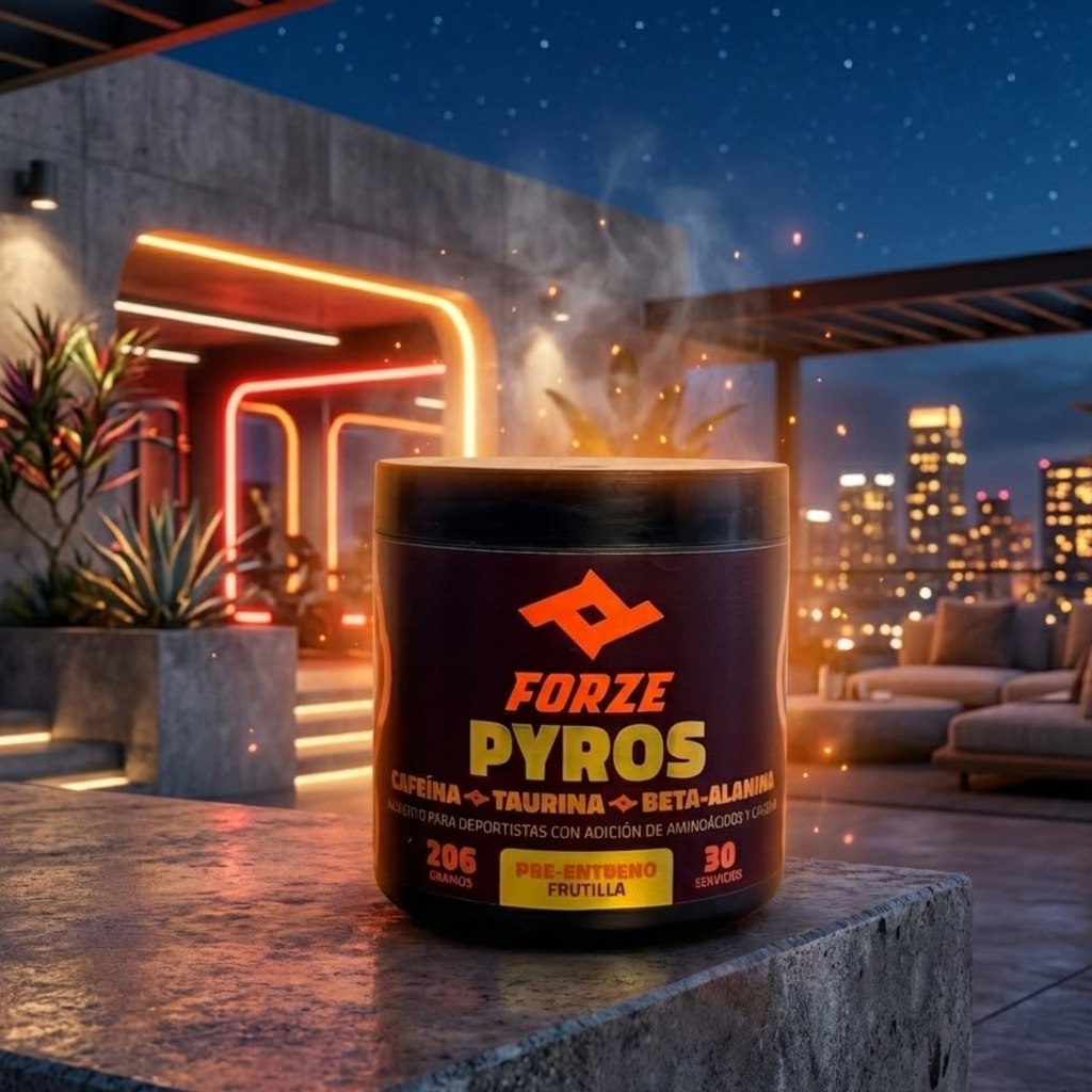 FORZE PYROS no es solo un suplemento; es el combustible que tu cuerpo necesita para romper estancamientos. Diseñado para atletas exigentes, nuestra fórmula pre-entreno combina los ingredientes más efectivos del mercado para ofrecerte una experiencia de entrenamiento superior.